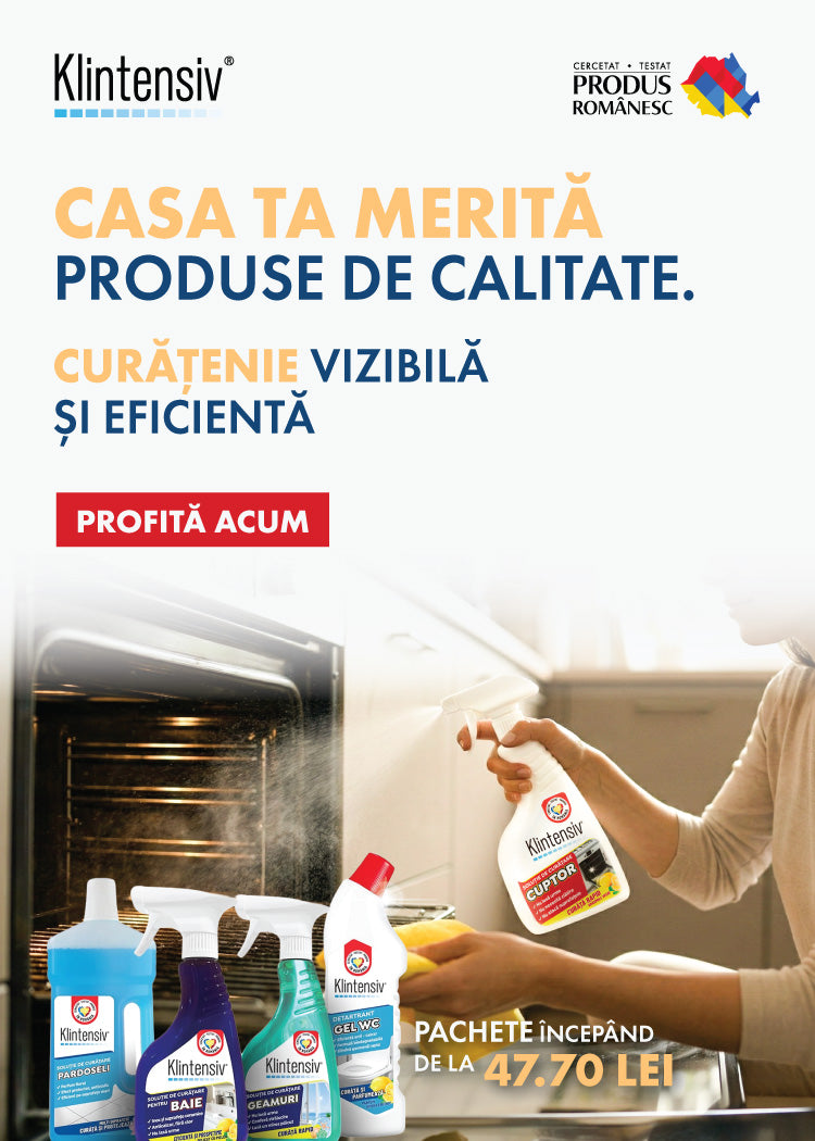 Curățenie rapidă și eficientă: Klinsmart acționează rapid, economisind timp și efort. Versatilitate: Ideal pentru toate suprafețele din casă, inclusiv podele, mese și geamuri. Laveta din microfibră: Eficientă și delicată, perfectă pentru toate tipurile de curățenie. Klinsmart este un produs inovator, formulat pentru curățarea...